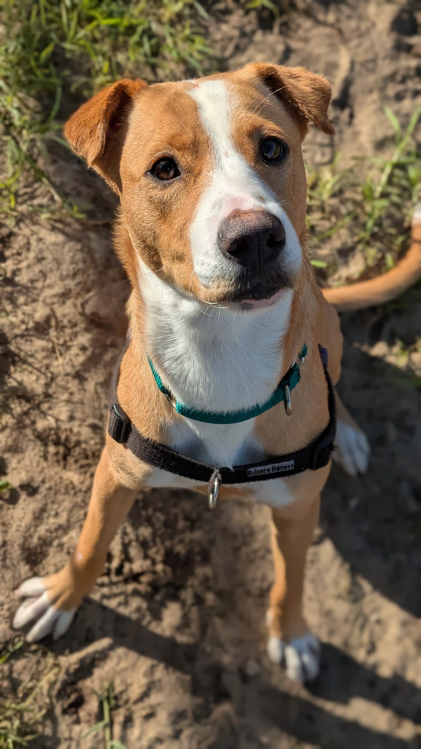 Nora is a sweet young girl who can be a little shy at first, but once she feels comfortable, her playful and affectionate side really shines. She has shown lovely social skills with other dogs and enjoys their company, happily engaging in play and walking nicely alongside them. She would benefit from a canine companion at home, but it is not essential if she gets social opportunities regularly.